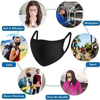 5 Pack Fashion Protective, Unisex Black Dust Cotton, Washable, Reusable Cotton Fabric