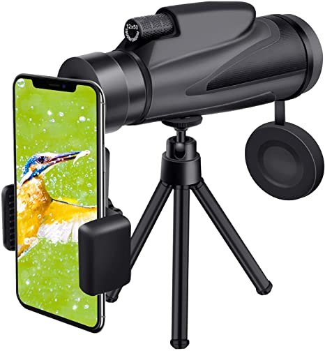 12×50 High Power Monocular Telescope for Android/iOS Smartphone, with Tripod & Phone Holder.